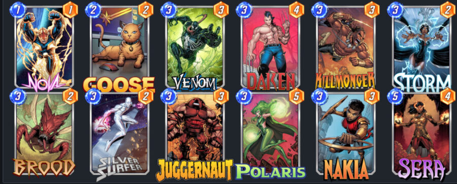 A play on one of the best meta decks at the moment (and, admittedly, my current favorite), pairing Daken with a Silver Surfer Marvel Snap deck seems like it could be a strong addition to many players arsenal. Most of the typical pieces are the same: use Nova and Goose early, then fill the board with three-cost cards. The Muramasa Shard fits in quite well with the typical playing ramp, especially if you can manage to play Daken on turn three, then the Shard in addition to another 3-cost on turn 4. However, if you can play Nakia to boost his power beforehand, Daken can get boosted even more. Try using Surfer before destroying the Shard with Venom or Killmonger to boost Daken as high as possible!