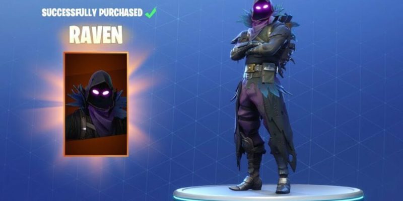 The twenty dollar “Raven” skin, which features a jet black color scheme, a shroud draped above glowing eyes, and a skeletal cage backpack is one of the more popular designs sold in store.