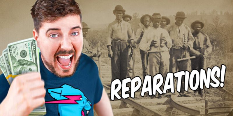 “I got $100 billion dollars, and I gave it all away to my black subscribers who could trace their family lineage back to being slaves in the United States. This is… the Reparations Challenge!” MrBeast said in his new 18-minute video, I Gave Black People $100,000,000,000!