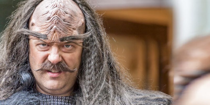 “We are both huge Star Trek fans and also have grown to resent one another with an anger that can only be expressed in Klingon,” explained Lisa Ash, also known as Odrona Wezazh, while putting on her prosthetic forehead. “It was kind of a no-brainer, just like my ex-husband, that stupid petaQ.”