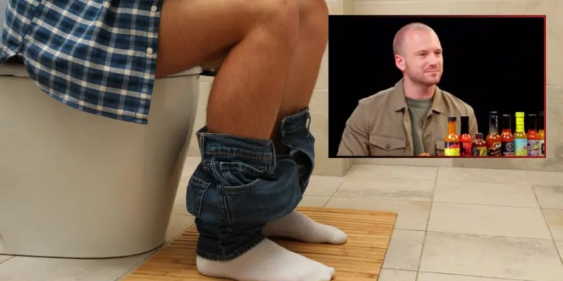 NEW YORK CITY — A new show serving as a continuation of the highly successful Hot Ones series sees host Sean Evans pester celebrities as they make frequent trips to a nearby bathroom after ingesting more and more variations of hot sauce, sources have confirmed.