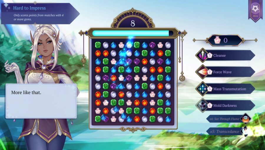 The dating sim elements of Scholomatch are hilarious from the jump, but when I played its demo at SIX, I found myself getting really into its take on match-3 games. From the start, you’re given a lot of tools to rearrange, defy, or break the system’s rules, and knowing when to use them is key to pulling off some of Scholomatch’s trickier challenges.