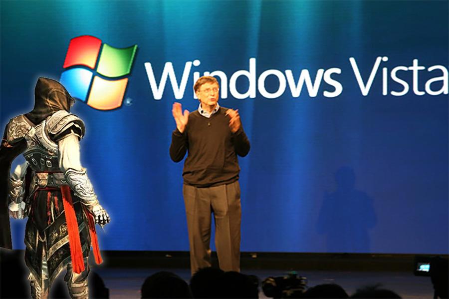Is that Bill Gates? Yes it is. Let’s go talk to him. Oh wait shit he is going to do something that will change the history of the world forever. Windows Vista. Your animus starts immediately glitching and the operator tells you that they just installed Windows Vista on Animus and it’s causing serious trouble. You’re probably not going to make it. Blue screen.