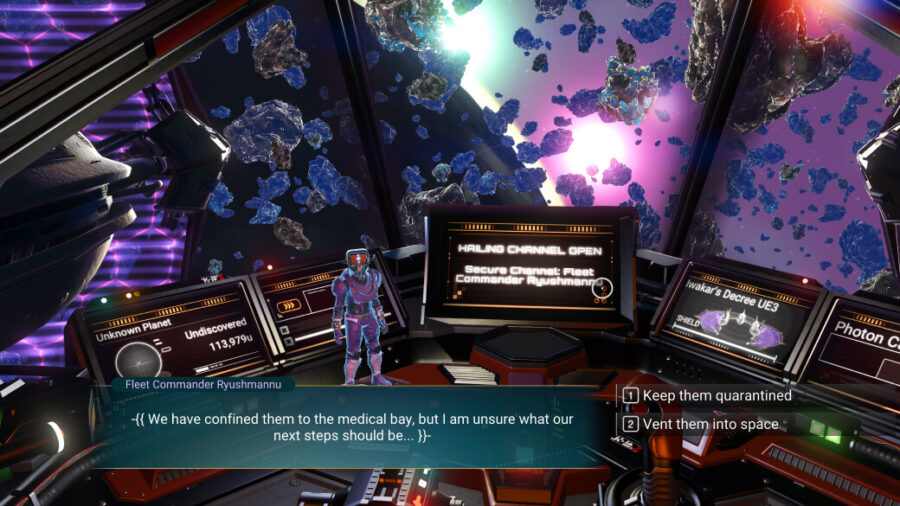 Fleets of frigates engaged in interstellar expeditions may reach out for remote guidance, or even request your presence for direct intervention! Advise your commanders in situations relating to crew management, strange space phenomena, risky exploration ventures and more – or warp to their system to help defend the fleet against attack!