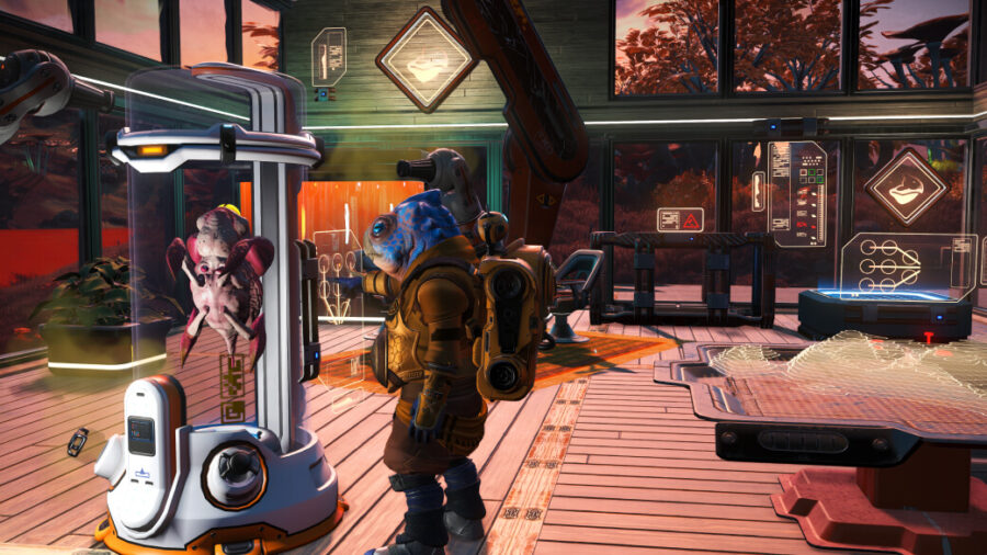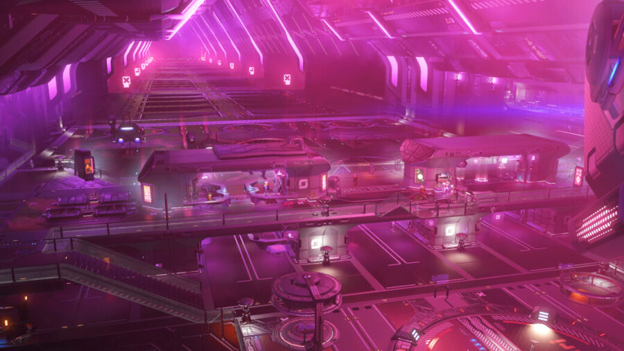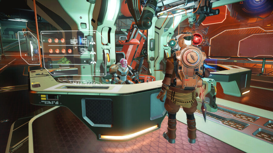 Each alien race imprints their personality onto their space station designs. The Korvax are known to furnish their stations with server blocks and technical equipment, Gek stations provide ergonomic seating amid scrolling billboards, and Vy’keen stations often double as a storage facility for classified military equipment.