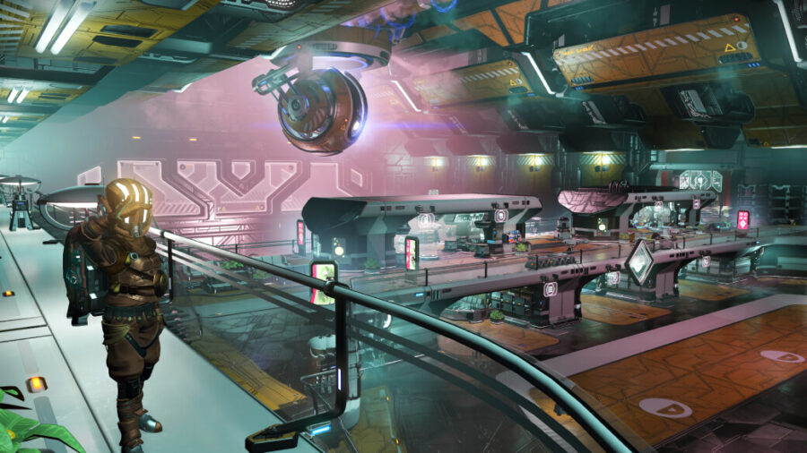 Space station interiors have been completely redesigned and expanded. Engine improvements have enabled a vast and dramatic new station experience. As well as visual improvements, navigating to essential shops and technical equipment is now more intuitive and efficient; stations include more nooks to explore; and aesthetics now vary tremendously from system to system.