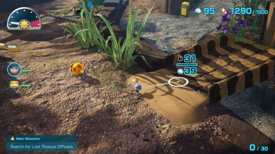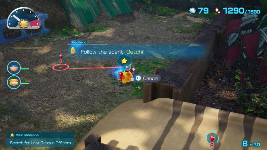 While most of the treasures are relatively easy to find (they’ll appear plainly in the world, or on the map) some are a little trickier to hunt down. They won’t appear on the map, and the only hints to their location are the Treasure Gauge (if you’ve purchased it from Russ) and Oatchi’s miraculous sense of smell. The Treasure Gauge can help if you’re already in the general vicinity, but if you’re down to the last piece of treasure in the area, Oatchi’s sense of smell is the way to go.
