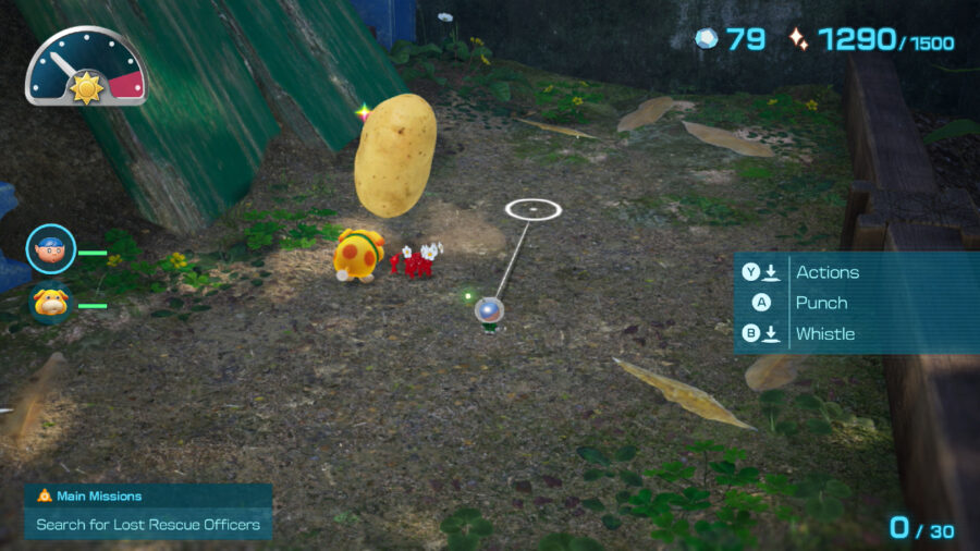 After a short while, the formerly-buried potato is now free, and you’ve found the trickiest treasure in the Sun-Speckled Terrace. You’ll need at least 7 Pikmin (or Oatchi and 4 Pikmin) to carry it back to your base.