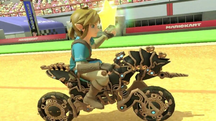 Treading on the cusp of camp, the Master Cycle has elements that are bogged down by an actively anti-cunt brutalist, postmodern aesthetic. It reminds me of something that the police would ride on in a Denis Villeneuve movie and it would ultimately confuse me, because for a movie set in the future, why do we need to replicate the shape of horses, the oldest mode of transportation ever? However, I will give it points for being animated in Skyward Sword style as opposed to the basic 3D rendering of most Mario Kart vehicles. Someone tried something here.