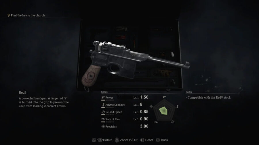 Red9 is by far the best handgun that Resident Evil 4 Remake has to offer. It’s a 9mm semi-automatic pistol that comes with notable recoil. The Red9’s appearance takes inspiration from the Mauser C96, a weapon from World War I, and features its iconic integral box magazine.