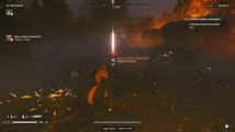 Our orbital ships helpfully beam highly visible lasers marking where an airstrike is about to take place. Stand too close and this might happen to you. This Helldiver thought they were delivering a delicious cup of liber-tea, but ended up liberating themselves from living instead.