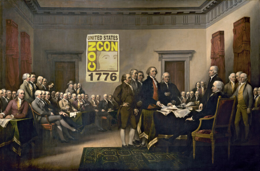 Americans found themselves addicted to their newly discovered pastime of cosplay. This led to the planning of the inaugural Continental Congress, or ConCon, in 1774. At the first ConCon, colony representatives gathered to show off their costumes and commission elaborate paintings while dressed up. The attendees started to bond over their shared interests, and that’s when things started to get out of hand. It was at this ConCon that they began to seriously discuss plans to break off from King George and start their own independent guild.