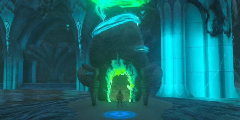 Upon entry, you’ll see your goal both in front and above you. Head down into the chamber and you’ll see a lift with a fan attached to the bottom, along with a suspiciously placed cylinder. You’ll notice it’s Ultrahand friendly, which means we’ll be finding a use for it.