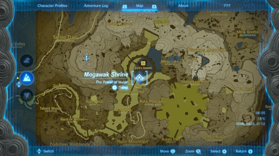 Mogawak Shrine is located within Zora’s Domain in the East of Hyrule, just underneath the bridge at the front entrance to the Zora homestead. If you’ve already got the map for this area unlocked at the Upland Zorana Skyview Tower, simply shoot up and paraglide your way eastward, you won’t miss the green glow of the Zonai Shrine.