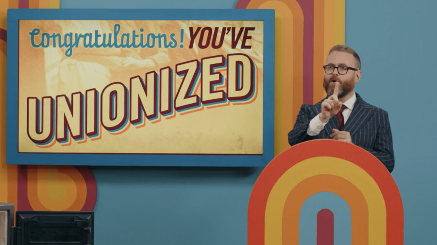 This high-volume episode features cast members Jess Ross, Jess Clemons, and Katie Marovitch, who at the start of the show find themselves relegated to an assembly line tasked with making increasingly absurd products, starting with “10 Ham Sandwiches” and eventually culminating in “1 Tossed, Screamed-At, Butt-Rubbed, Sam-Kissed, Captain Ameriduck in Bra and 7 Triple-Decker Sandwiches.” Of course, “high-volume” is close cousins with the fight-or-flight response, and as soon as that conveyer belt whirs to life and the one-minute timer starts ticking down, the line between the two becomes very, very blurry. The relentless demands of industry keep the players in check, but one suspects with a longer runtime we might’ve seen a stony-faced Katie Marovitch make a move for Sam’s throne.