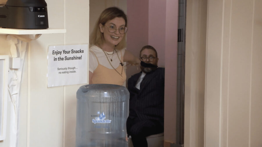 Brennan, Lou, and Siobhan Thompson find themselves trapped in the Game Changer green room turned escape room, their freedom withheld by a series of puzzles, smashable objects, and a camera operator whose culpability Lou brings into question while citing the Nuremberg Trials. The greatest moment comes toward the end, however, when the cast members unlock a door only to discover Sam Reich sitting tied and gagged on the toilet (seriously), begging to be released. They close the door on him.