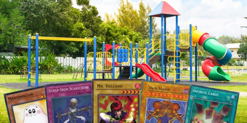 If your first time playing Yu-Gi-Oh was at a local card shop surrounded by twitchy pro players and the sweet fumes of so much cardboard, turn back now. This list is not for you. This list is for those who sit, right now, in the grass, mulch, and dirt, on the steps of plastic slides and at scalding hot steel picnic tables, cards in hand, blissfully ignoring the basic rules and strategies of Yu-Gi-Oh. That’s right, I’m talking about the playground meta.