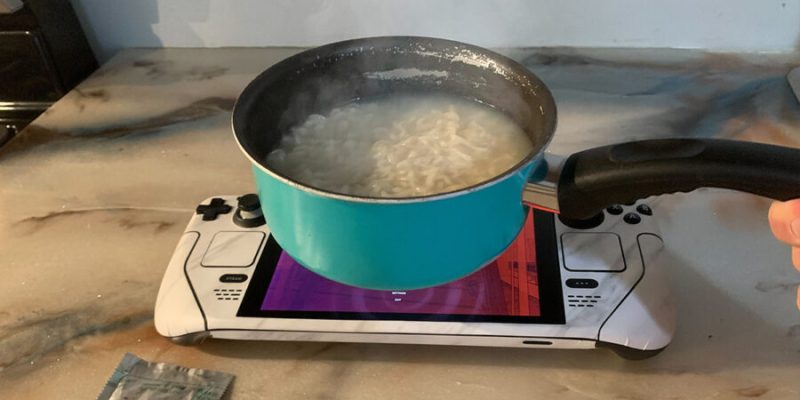 Congratulations on affording a Steam Deck! If you were able to pull that off, odds are good that a fun new way to cook Ramen should be right up your alley. Be sure to put your Steam Deck in the freezer for 45 minutes after this to cool it off, otherwise it might get seriously damaged.