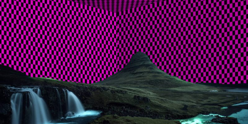 Upon arriving and driving their rental car to a spot they’d heard had a great view, the couple weren’t greeted by the beautiful green swirling lights of the Aurora Borealis, but instead by harsh black and pink checkered walls.