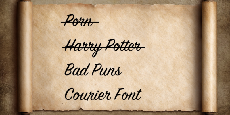 Other entries on the list included bad puns, blurry screenshots of tweets, and Courier New, a typewriter-style web font used to post funny transcripts on Tumblr.