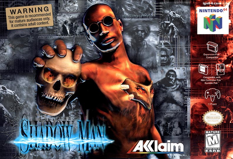 This game is so badass. It’s Tomb Raider meets Ocarina of Time meets Metroid meets Blade. You are Michael LeRoi/Shadow Man, tasked with stopping the apocalypse despite being too old for this shit. You travel back-and-forth between the world of the living (Liveside) and the world of the dead (I’ll let you guess what this world is called; let me remind you again that the living world is called “Liveside”). You advance by recovering Dark Souls—and to boost engagement on this list I’ll go ahead and say this is the best game ever made that requires you to do something like that. Shadow Man boasts an intricate story, excellent voice acting, non-linear gameplay, a chilling atmosphere, and combat that isn’t great but it doesn’t matter because your Shadow Gun has unlimited death-juice-ammo.
