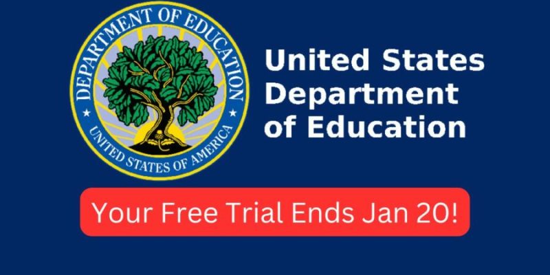We here in Washington D.C. hope that you have been enjoying your free trial of the Department of Education. This is a friendly reminder that your free trial period ends January 20, 2025, and we would hate for you to lose access to the Department’s great features that will totally still be there after inauguration day.
